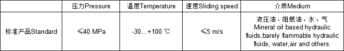 標準材料密封環:填充聚四氟乙烯F-PTFE0形圈:丁腈橡膠NBR特點-耐壓性很高-結構防扭曲-防擠出特性非常好-耐腐蝕性高-導熱性好-低摩擦,不會造成“液壓爬行”-由于有橡膠異形圈,接觸壓力高