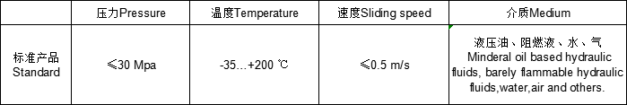標準材料密封環:填充聚四氟乙烯F-PTFE 擋圈:聚甲醛POM或尼龍PA0形圈:丁腈橡膠NBR特點-要求活塞桿或活塞密封的場合均可提供-摩擦力小-啟動時不爬行,無粘滯現象-抗磨性及尺寸穩定性好